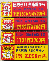 ※一部の宝くじ券の当せん金は、お受け取りになれないことがあります。窓口でご確認ください。